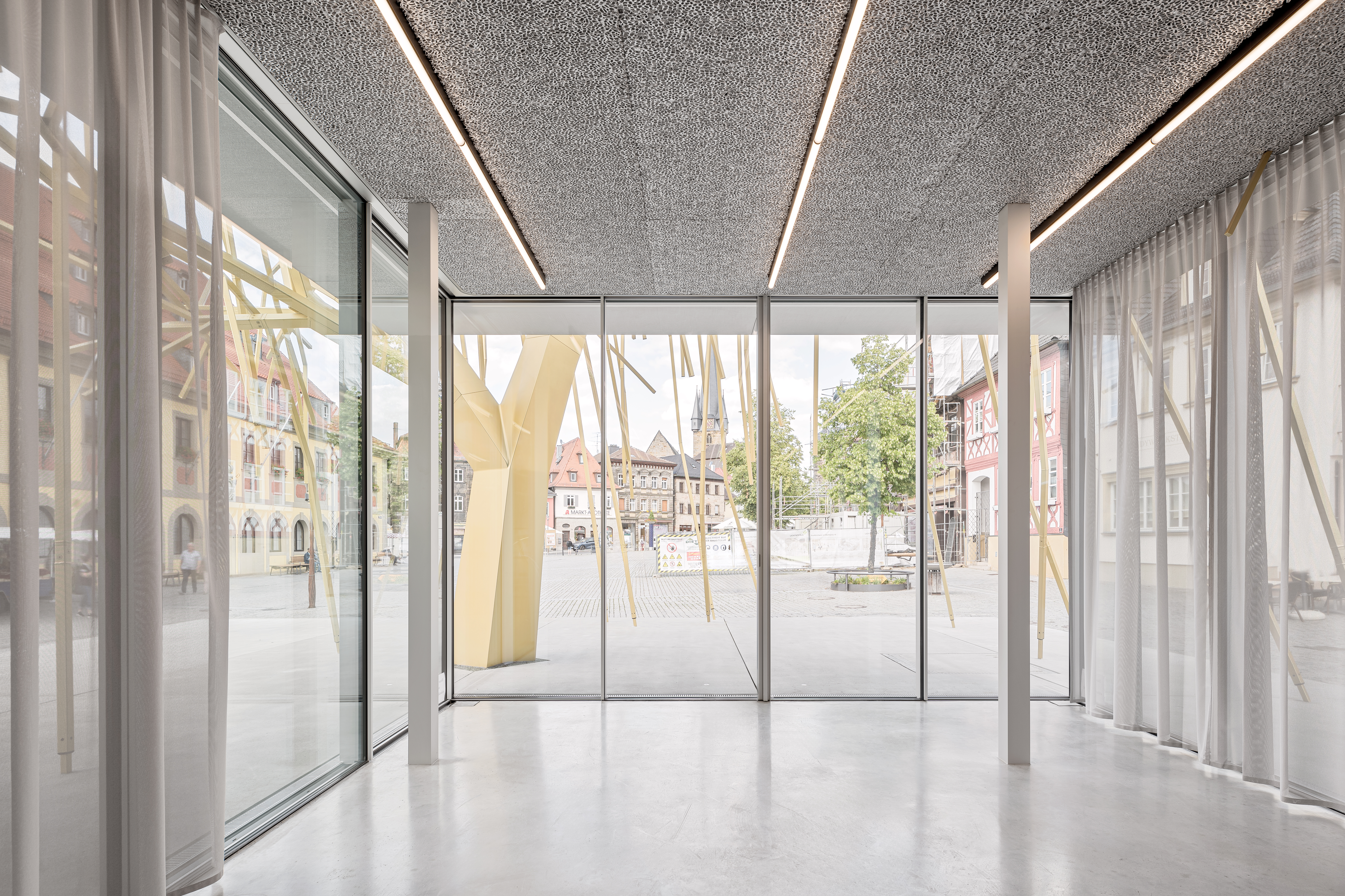 Im Südwesten des Stadtplatzes in Lichtenfels wachsen Bäume und ein Gebäude, das neuen Raum eröffnet.